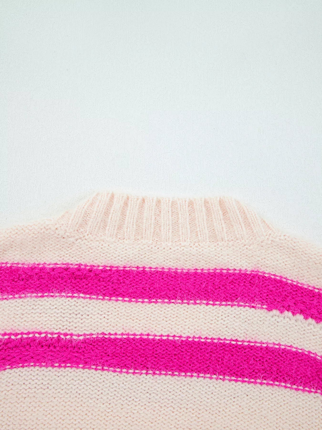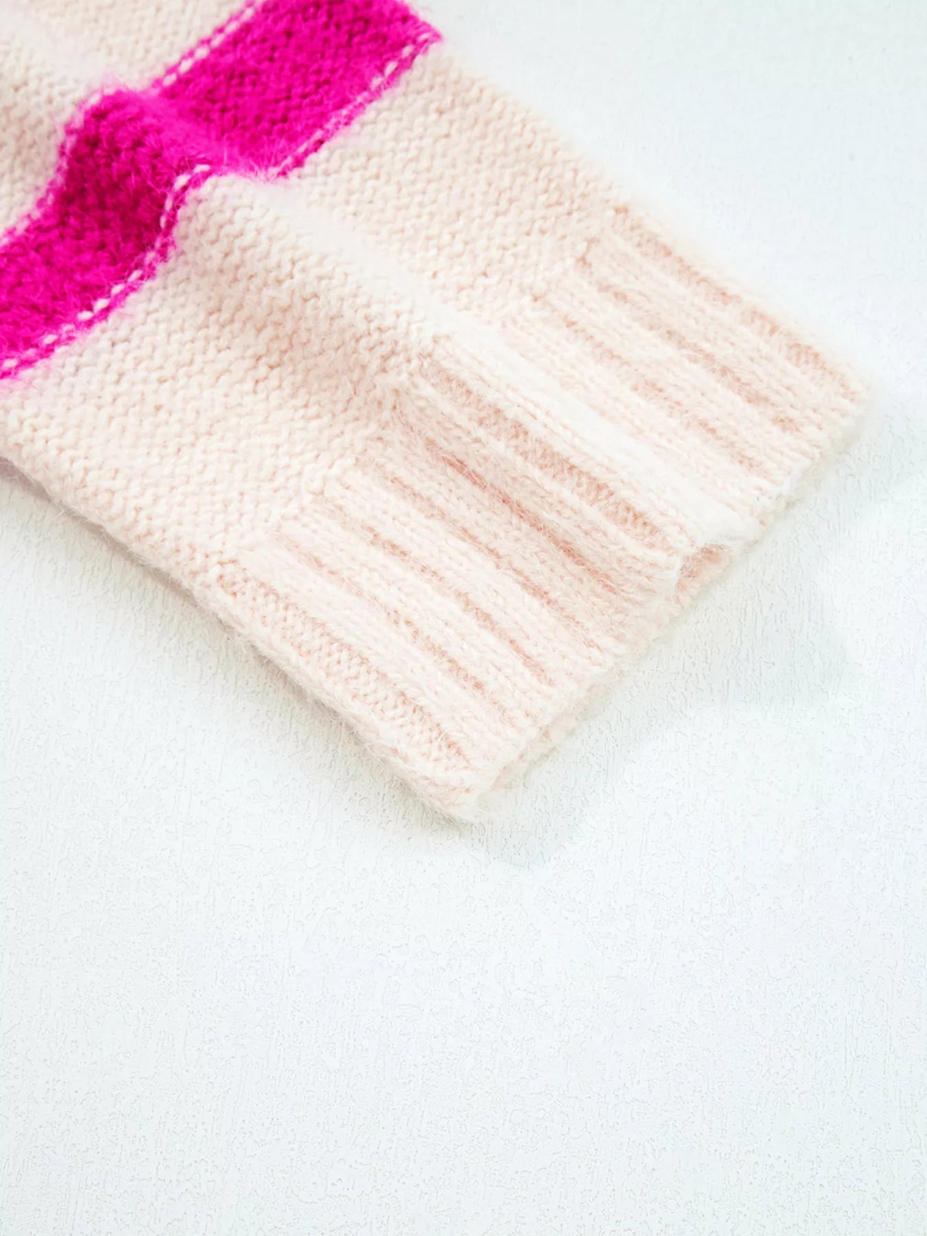 Sequin Letter Graphic Colorblock Loose Sweater ships 2-3 weeks