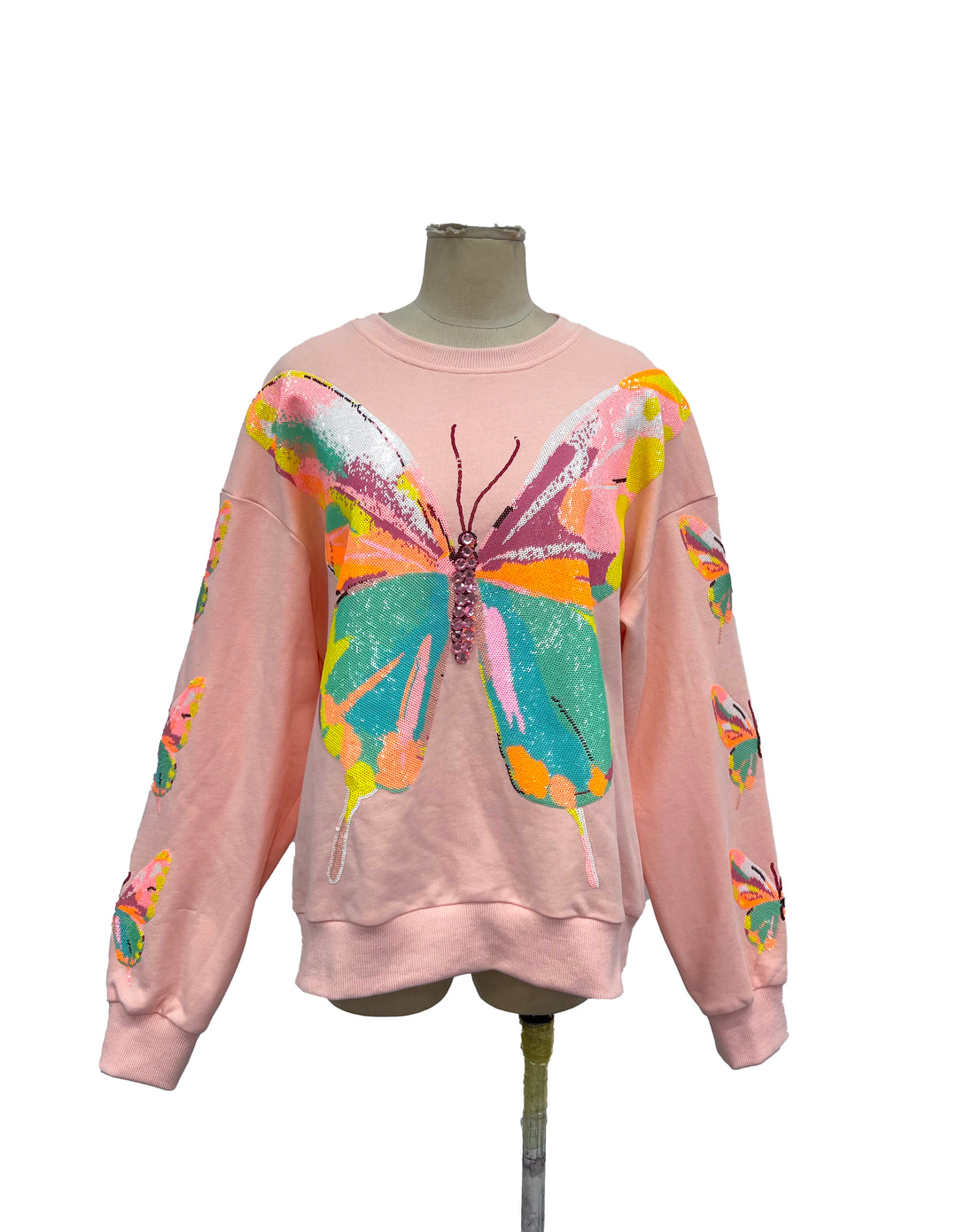 Pink Sequin Heart Bow Pullover with side bows preorder