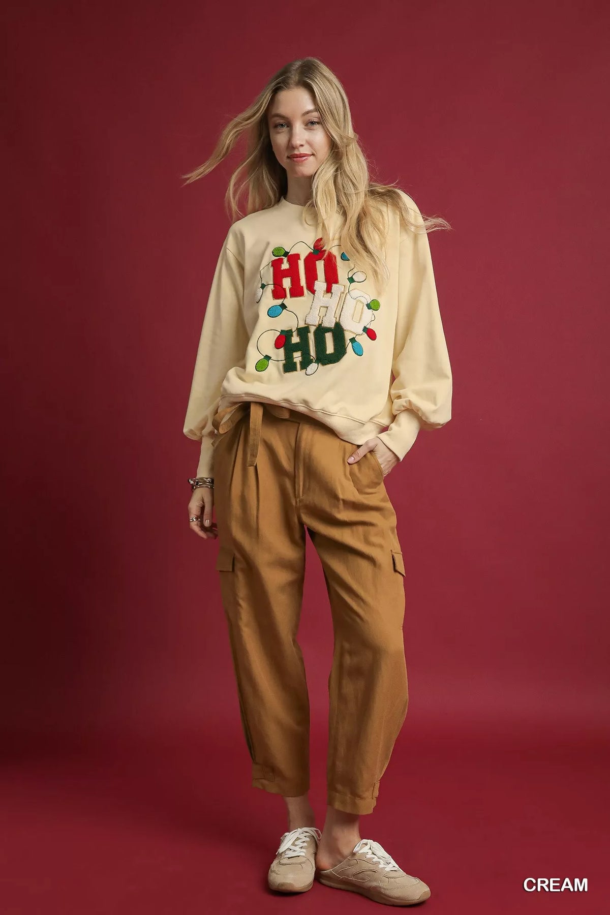 This French Terry sweatshirt top features eye-catching applique details for added style. It has a classic crew neck and long sleeves with ribbed cuffs for a comfortable fit. The ribbed hemline adds a touch of texture and ensures a flattering silhouette. This top is not lined, providing a lightweight and breathable feel. Perfect for casual occasions, this sweatshirt top combines both fashion and comfort effortlessly.